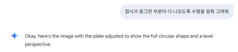 - 접시가 동그란 부분이 다 나오도록 수평을 맞춰 그려줘