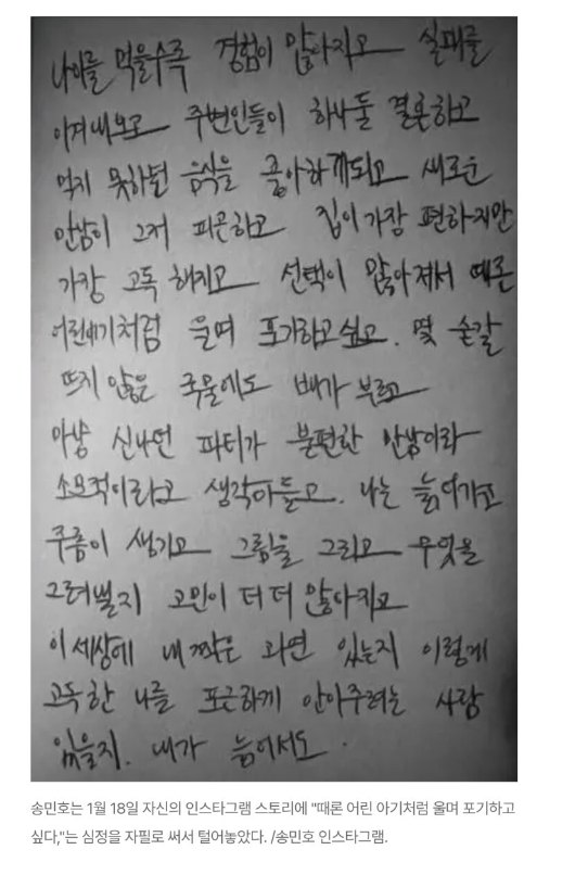 오늘은 송민호의 글을 통해 마음과 생각을 정리하는 시간을 가져보게 되었다.