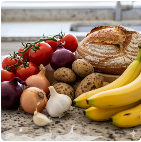 - 감자: 냉장고의 낮은 온도에서 감자의 전분이 당분으로 변해 식감이 푸석해지고 맛이 변합니다. 서늘하고 어두운 곳에 신문지나 종이 봉투에 담아 보관하세요.