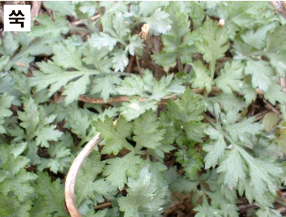 * 입, 싹, 줄기 식용 : 명아주, 쑥, 냉이...