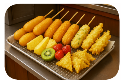 - 갓 튀긴 튀김은 안전하지만, 여름철에는 조리 후 상온에 오래 두면 표면에 세균이 증식합니다.