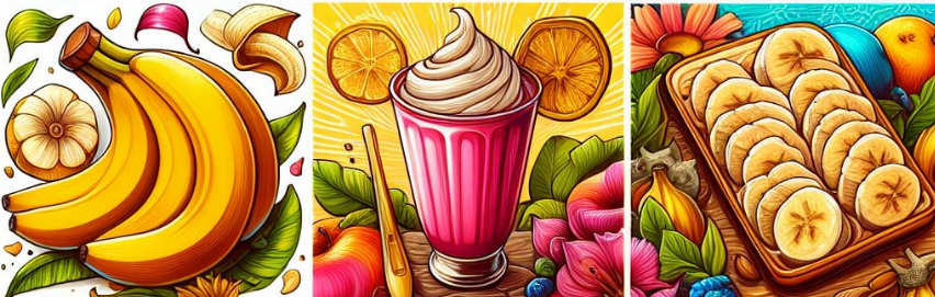날로 먹거나 샐러드, 과자재료, 건(乾) 바나나, 바나나가루, 바나나주(酒), 바나나사이다,