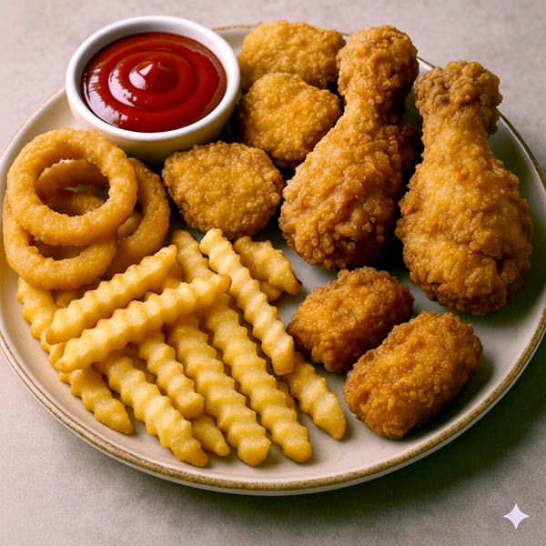 - 튀긴 치킨, 감자튀김, 돈가스 등 고온에서 튀긴 음식
