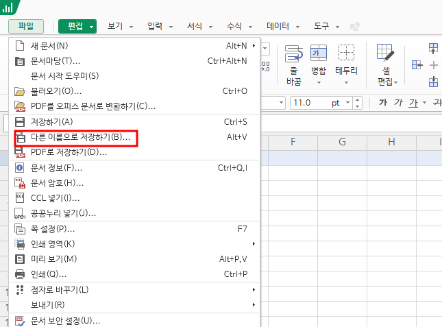 한셀을 기준으로 설명을 드리겠습니다.