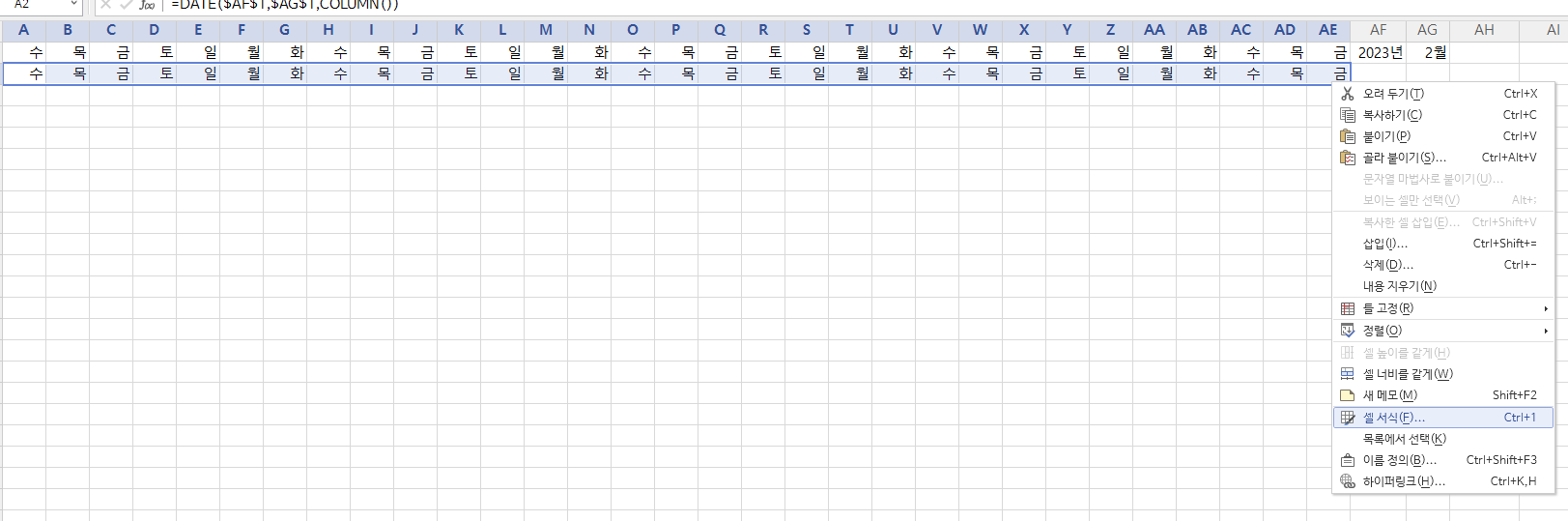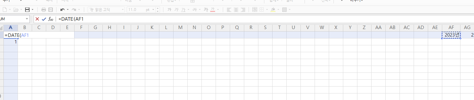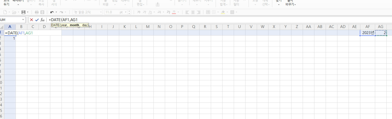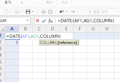 자동으로 =DATE(AF1으로 표기됩니다.