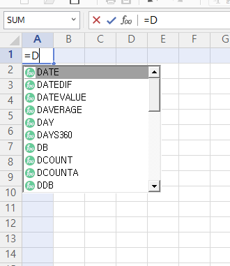 A셀에 =D를 입력하면