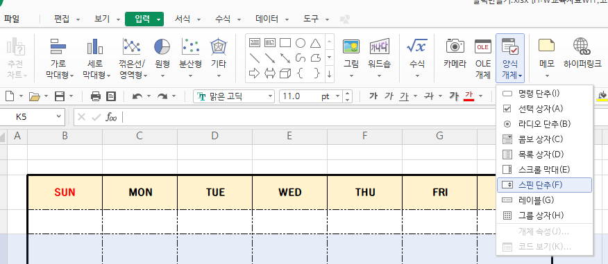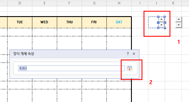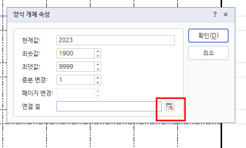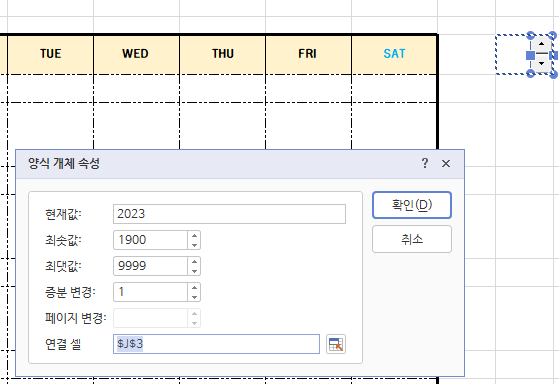 같은 방법으로 월 부분의 스핀단추도 입력을 해줍니다.