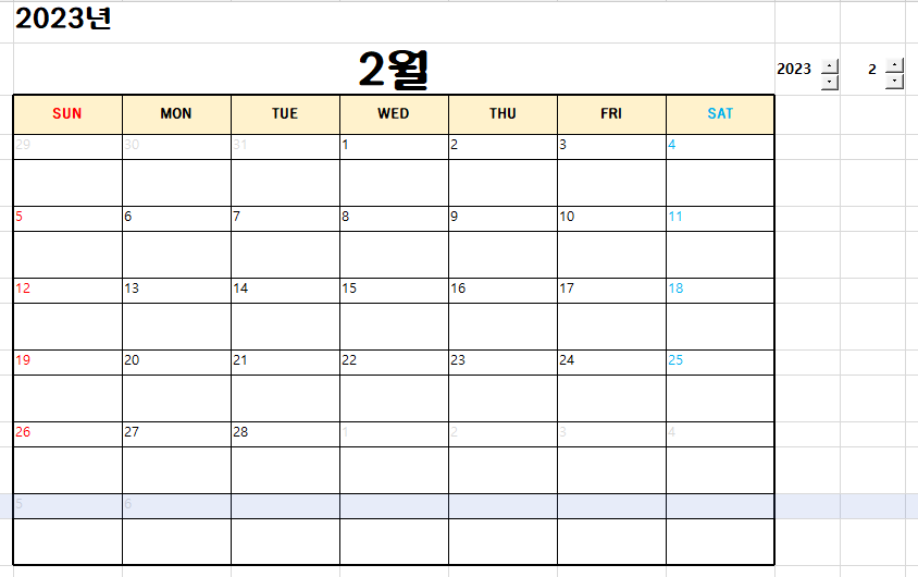 엑셀 달력 만들기 두 번째 /한셀 달력만들기