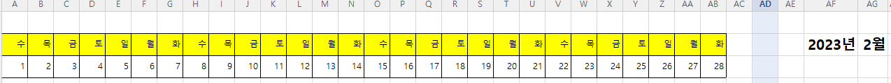 우선 엑셀에 달력 폼을 만들도록 합니다.