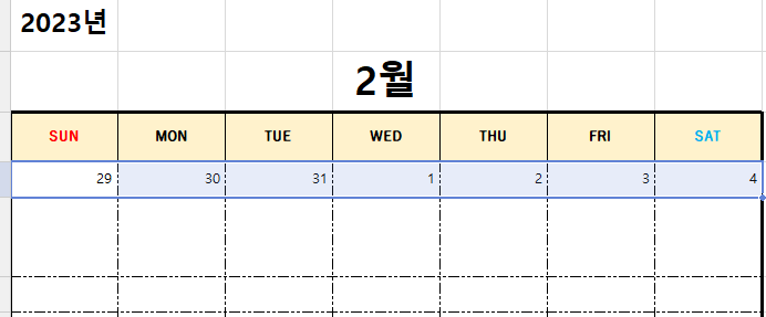 그러면 달력의 첫번째 일요일이 1월 29일라고 자동으로 뜹니다.