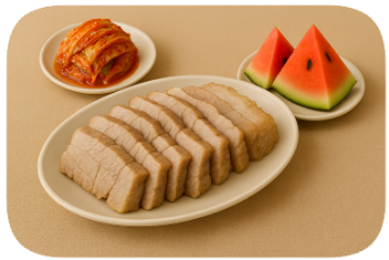 - 돼지고기를 먹은 후 수박은 1시간 이상 간격을 두고 먹는 것이 좋습니다.