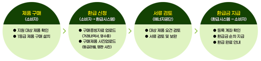 정부에서 에너지 절약을 장려하기 위해 에너지소비효율 1등급 제품을 구매한 가정에 구매비용 일부를 환급해 주는 제도입니다.