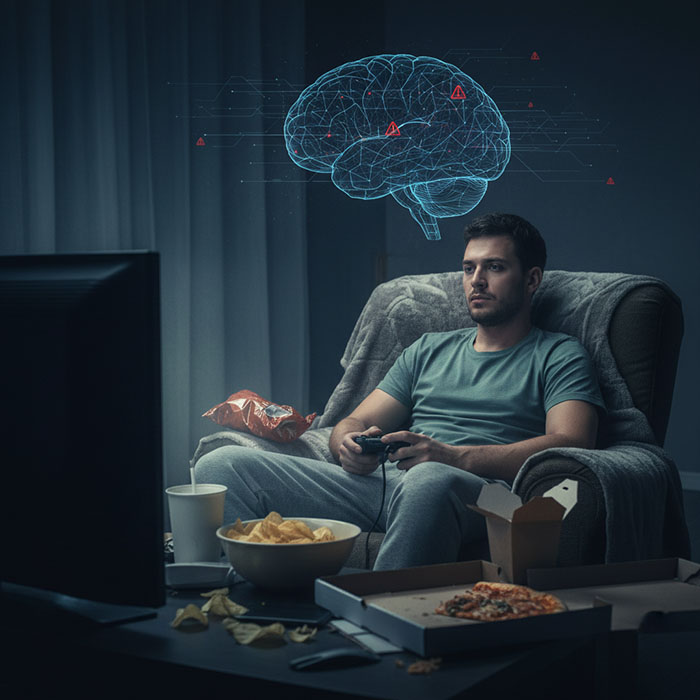 - 문제점: 의사들이 가장 경고하는 습관 중 하나입니다. 잠을 자는 동안 뇌는 낮 동안 쌓인 베타-아밀로이드와 같은 독성 단백질 찌꺼기(노폐물)를 청소합니다. 만성적인 수면 부족은 이 청소 작업을 방해하여 뇌에 지속적인 스트레스를 주고, 장기적으로 알츠하이머병의 위험을 크게 높입니다.