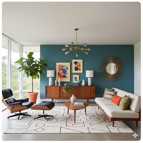 미드센추리 모던 인테리어는 1940~60년대 미국과 유럽에서 유행했던 디자인으로, 심플한 라인과 원색 포인트, 기능성과 미학을 동시에 추구하는 스타일입니다.