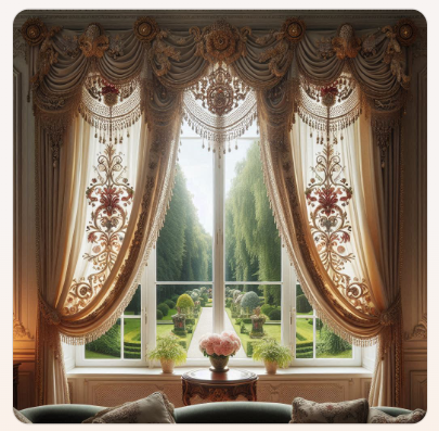 주름이 잡힌 커튼으로,
