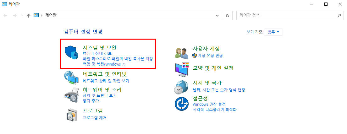 제어판-시스템 및 보안-시스템에 들어갑니다.
