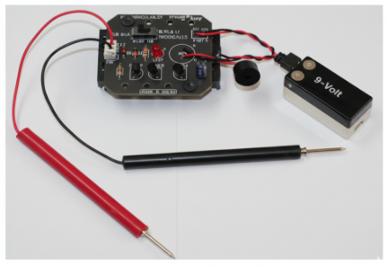 • 소리를 내는 피조 부저와 측정용 리드봉을 연결합니다.
