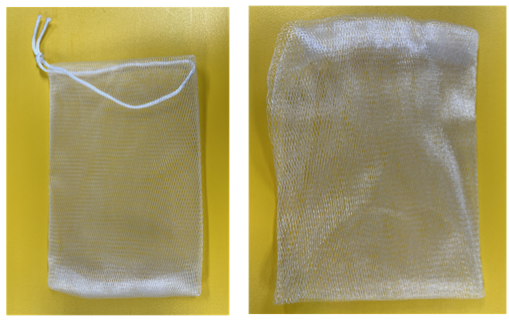 가위를 이용해서 그물망 끈을 잘라 빼줍니다.