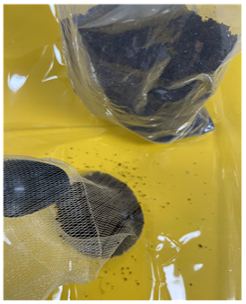 필요한 재료: 그물망, 스푼, 압축토, 바닥판,