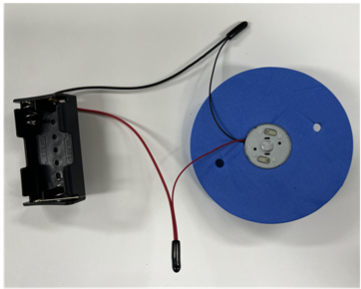 모터와 건전지 홀더의 검정선끼리 연결한 후