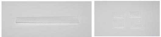 4) 용액으로 부푼 티슈를 펼친 후 쿠킹호일과 같은 방법으로 접은 후 4 등분합니다.