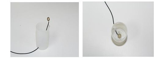 5) 필름통 밑에 구멍을 뚫고 그림과 같이 선을 넣은 후 와셔를 연결합니다.