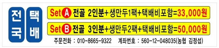 만두집의 메뉴표와 택배로 주문할 때의 금액입니다.