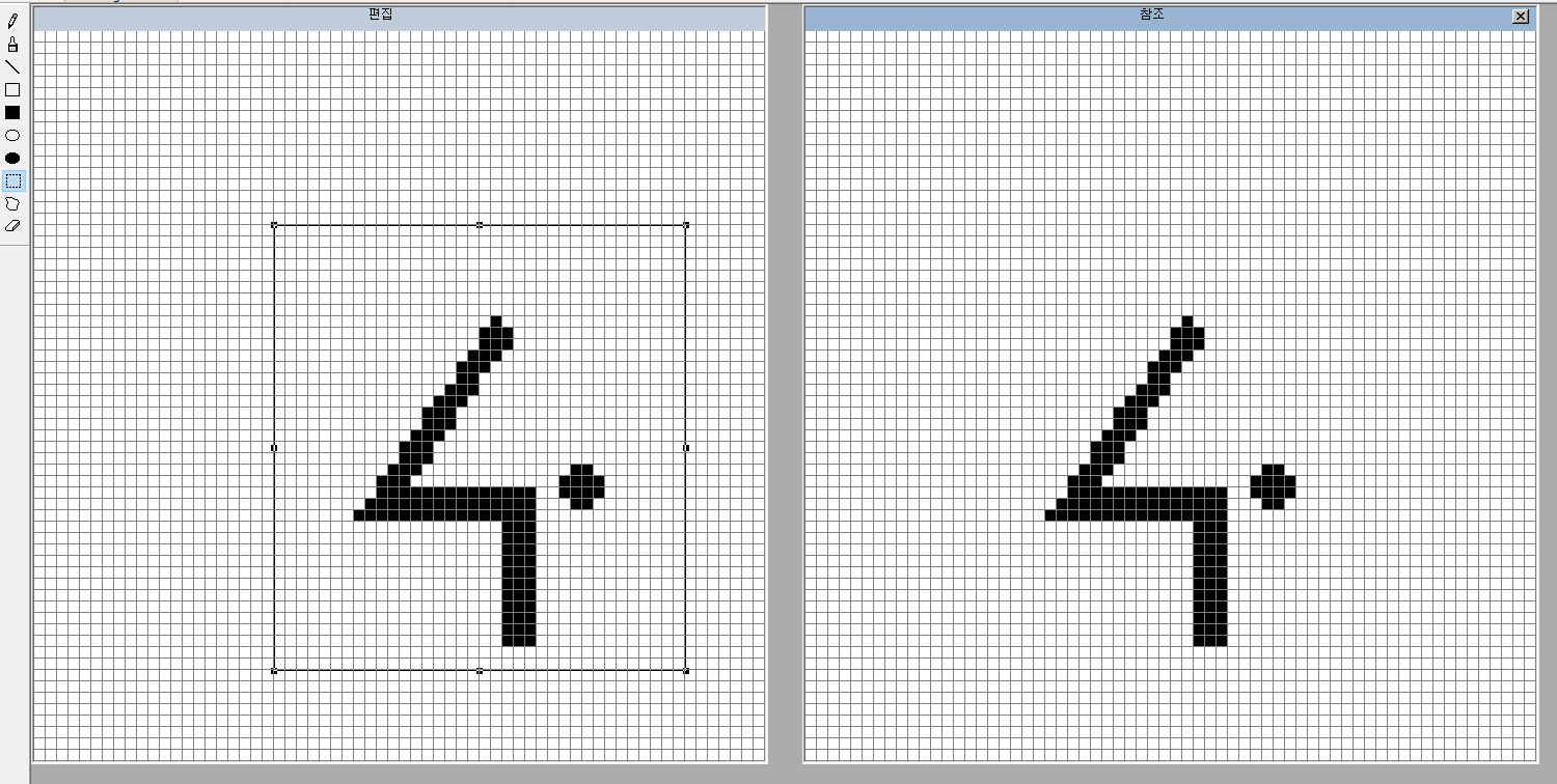 편집 화면은 가로 x세로가 64점 x64점으로