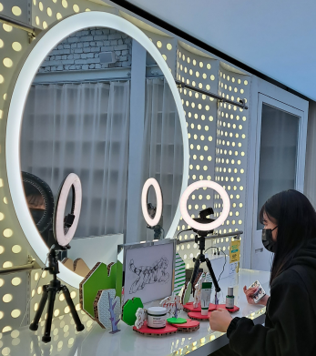 ♣거울을 보며 웃는 연습을 한다.