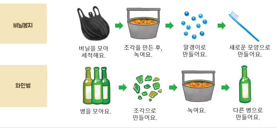 간단히 말해 종이에서 종이, 플라스틱에서 플라스틱으로 돌아가는 과정을 뜻합니다.