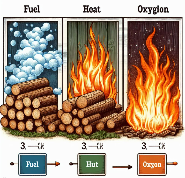 이 세 가지 요소가 함께 작용하여 불꽃이 타오르고, 빛과 열을 발생시킵니다.