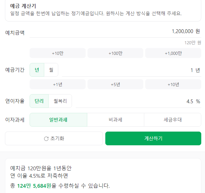 예금 120만 원을 1년간 예치했을 때, 첫 달도 120만 원에 대한 이자.. 둘째 달도 120만 원에 대한 이자를 준다고 하셨어요.