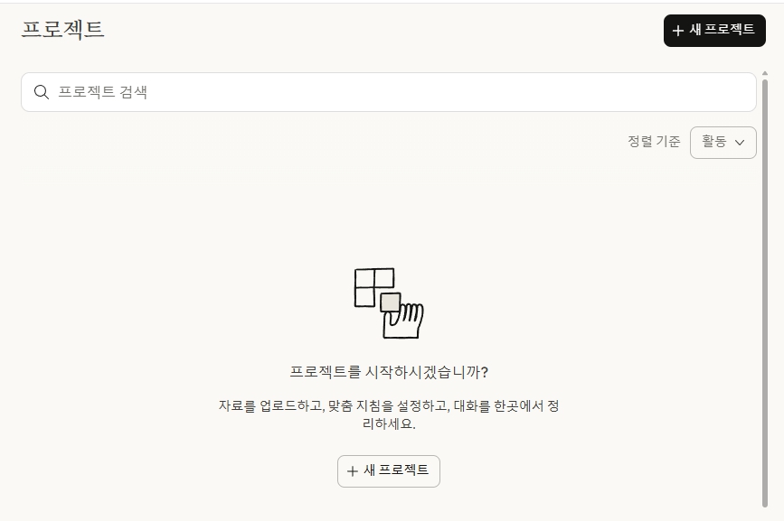 프로젝트는 특정 작업에 필요한 지식, 파일, 설정을 하나로 묶어 관리하는 워크스페이스입니다. 한 번 설정하면 매번 반복 설명할 필요 없이 일관된 작업이 가능합니다.
